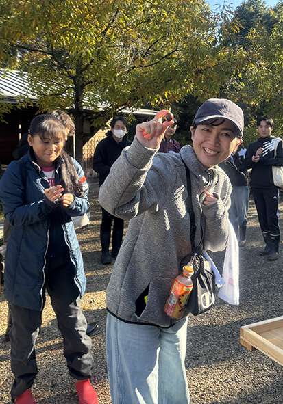そして、優勝者にはスタッフお手製の木のメダルとドングリゴマを乗せられるドングリ帽子で作成したトロフィーが贈呈されました❣優勝されたお気持ちを聞くと、「優勝を狙っていたのでとても嬉しいです!」と笑顔で答えてくださいました。どんな仕事も熱心に取り組まれる姿勢がこの優勝に関わっておられるのではないかと思いました。本当におめでとうございました‼